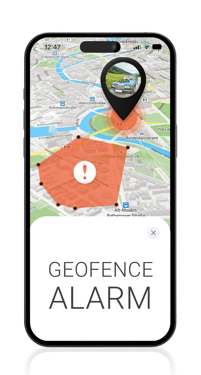 Sofortige Alarmierung via Push-Nachricht, sollte Ihr Auto einen festgelegten Bereich verlassen.