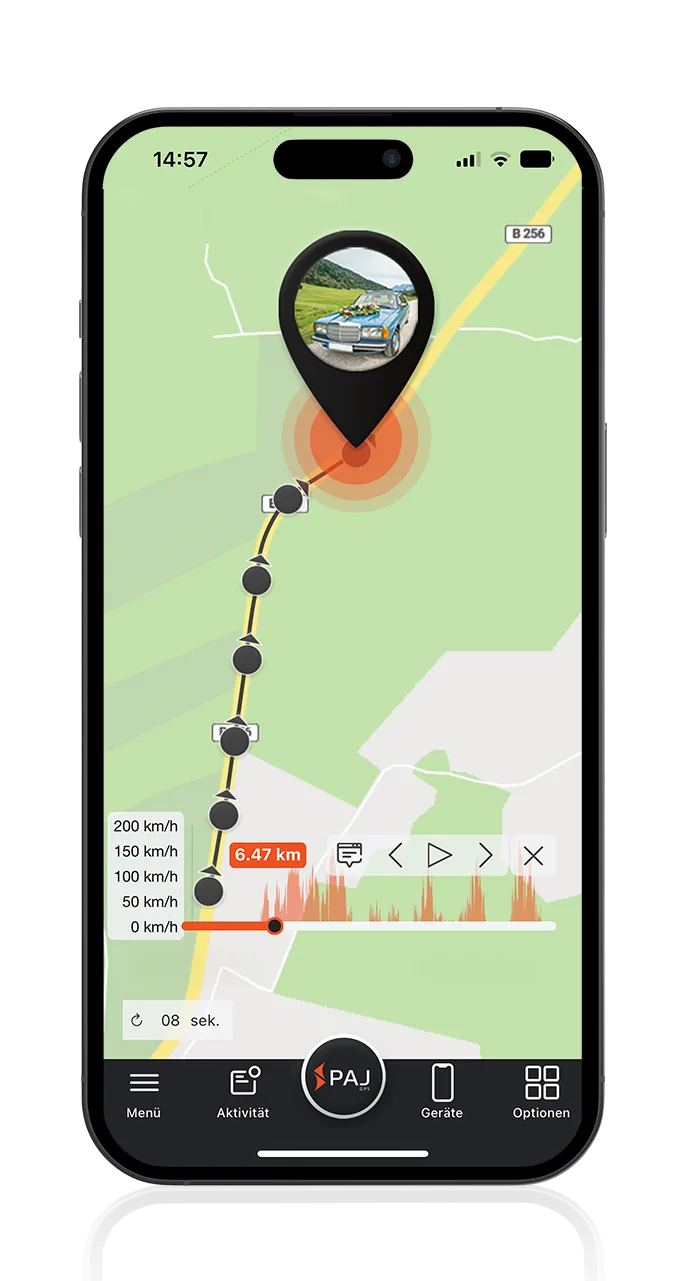 Mithilfe eines GPS Trackers von PAJ kannst Sie Ihr Auto ohne Einschränkungen Orten. Egal, ob von zu Hause, auf der Arbeit oder aus dem Urlaub.