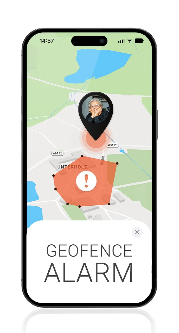Um zu gewährleisten, dass die geliebten Personen zu Hause leben können und um ein Pflegeheim zu vermeiden, eignet sich unsere Finder durch den Radiusalarm perfekt. Ein selbst festgelegter Radius wird hierbei aktiviert und bei Verlassen ein Alarm an alle hinterlegten Kontakte gesendet.