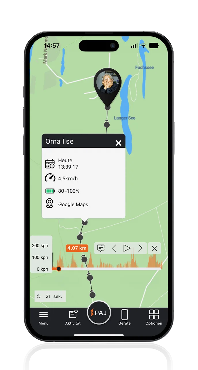 Gerade diese Funktion kann Angehörigen von demenzerkrankten Personen Aufschluss darüber geben, wenn diese die Orientierung verloren haben.